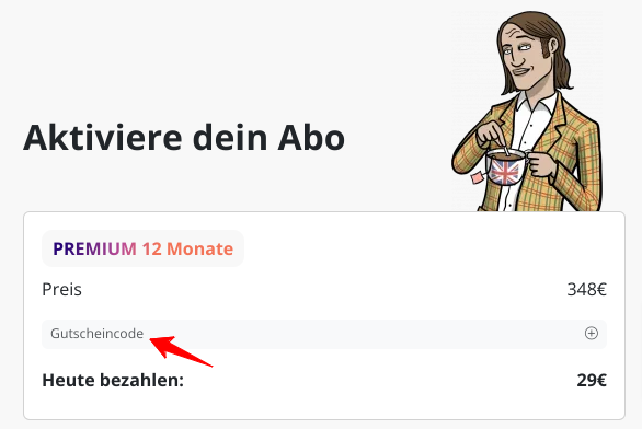 Wenn Sie einen Promo- oder Rabattcode haben, können Sie ihn auf der letzten Seite beim Kauf eines Abonnements in unserem Online-Shop anwenden. Dafür :