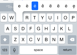 Halten Sie einfach den Buchstaben gedrückt, für den Sie den Akzent setzen möchten. Eine Liste mit akzentuierten Buchstaben wird angezeigt, aus der Sie auswählen können. Um beispielsweise à einzugeben, halten Sie den Buchstaben a gedrückt und wählen Sie dann à. Um é, è, è, ê oder ë einzugeben, halten Sie e gedrückt und treffen Sie dann Ihre Auswahl. Für ç, halten Sie den Buchstaben c gedrückt, usw.