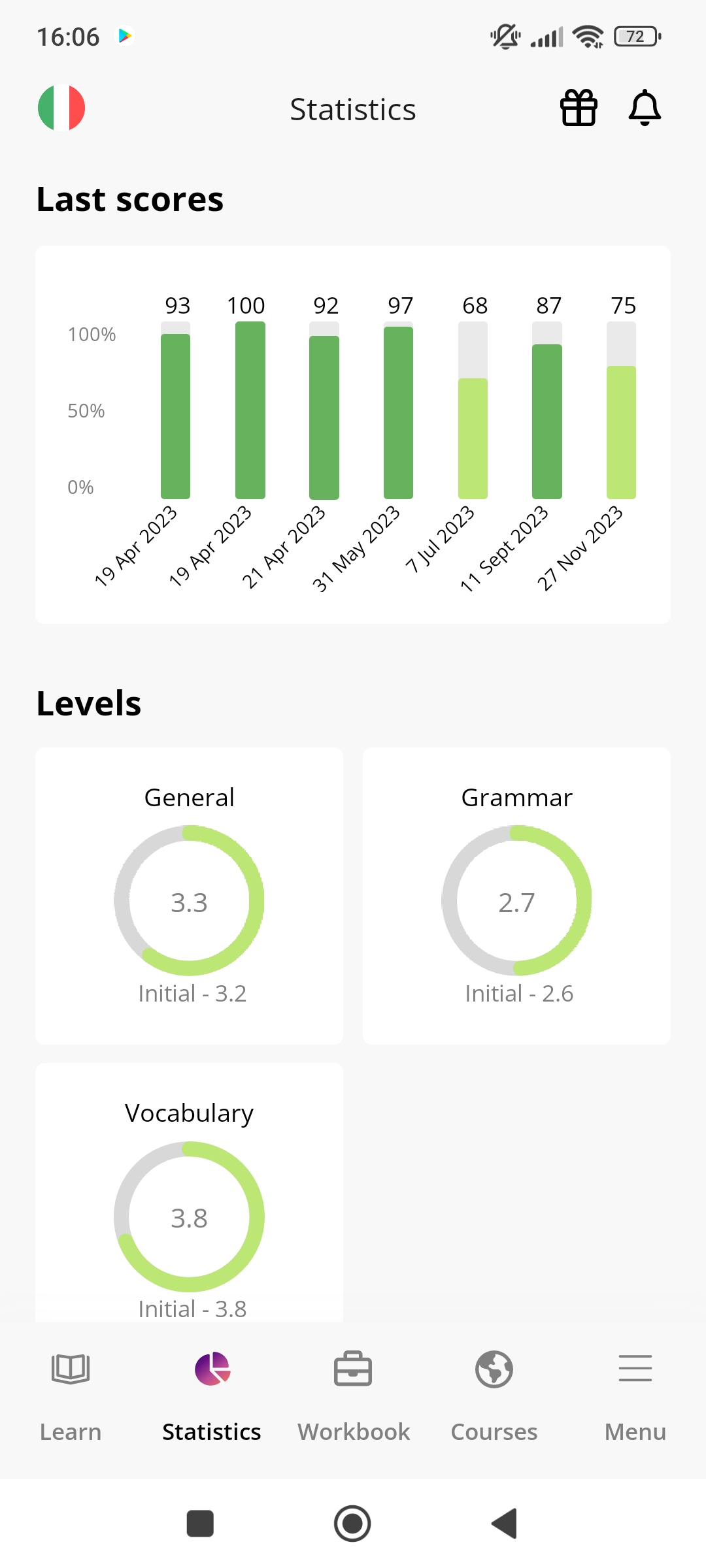 Sure you do. To view your level, progress and other statistics, tap the "Performances" icon located at the bottom of your screen.