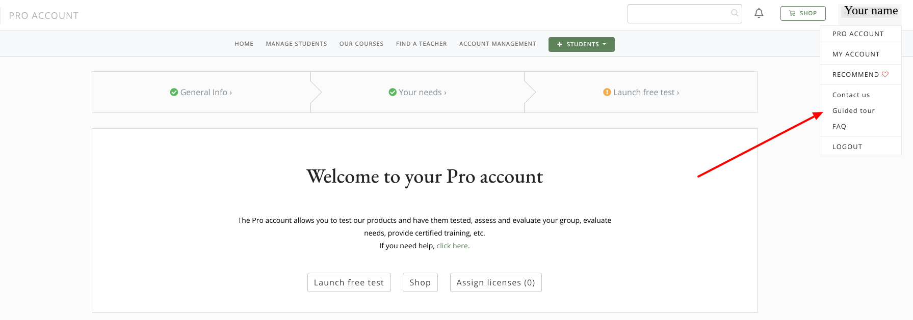 Your PRO account is your go-to page for all your needs: managing students, buying and assigning licenses, viewing documents and much more.