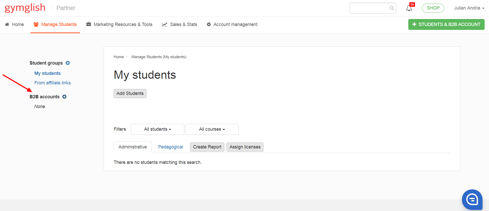 Simply visit the "Manage Students" section of your Partner Space, click on "B2B accounts +" from the left-hand menu, and fill out the form.