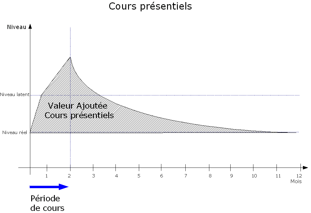 Les cours présentiels permettent aux utilisateurs de retrouver rapidement leur niveau latent, puis de continuer à progresser. Une fois que les cours sont terminés, et s'ils ne sont pas suivis d'une sollicitation régulière des acquis, les progrès sont soumis à l'impact du temps et de l'oubli. S'il ne pratique pas après ses cours, l'utilisateur retrouve peu à peu le niveau qu'il avait en début de formation.